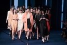 Fabrics were structured and in clear, dense hues. Patterns – dots and flowers – were mega-big. After the flat textures came shine and a small group of girls covered in rose prints with their faces hidden in the fabric.