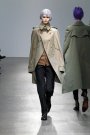 Yes it was a dark collection, but it was an elegant kind of dark. So instead of studded rough leather designer Ennio Capasa created gracefully cut leather pieces, that formed rich details on skirts, coats and pants. And not only the leather was in perfect ‘shape’; every single item in the show was perfection. We would love to get our hands on those majestic coats, powerful pleated pants and minimalistic dresses. The only few items that were a bit off were a series of see through turtle necks, with tape on them to cover the models nipples. The rest of the collection proved Capasa is classier than that and a more subtle kind of sheerness suits him and his Costume National women way better.