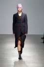 Yes it was a dark collection, but it was an elegant kind of dark. So instead of studded rough leather designer Ennio Capasa created gracefully cut leather pieces, that formed rich details on skirts, coats and pants. And not only the leather was in perfect ‘shape’; every single item in the show was perfection. We would love to get our hands on those majestic coats, powerful pleated pants and minimalistic dresses. The only few items that were a bit off were a series of see through turtle necks, with tape on them to cover the models nipples. The rest of the collection proved Capasa is classier than that and a more subtle kind of sheerness suits him and his Costume National women way better.
