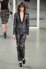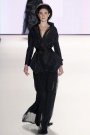 Donna Karan returned to chic urbanity for coming fall. The collection focused on a thin silhouette and men’s tailoring, often in pinstripes. Karan incorporated her signature a-symmetric style — half-collars, side-draping, off-kilter slits — and dared to revive an audacious shoulder. The dresses shown had an architectural, sculpted feel, as though the fabric – black matte crepes – had been simply moulded around the models’ bodies. She finished everything off with fabulous asymmetric hats. Eveningwear looked fresh with lean, constructed gowns and a nice mix of felted jersey and sequins on sheer fabrics.