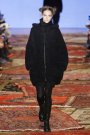 Romantic and very feminine, in an almost cliche way – that’s what Thakoons fall collection reflected. An undercurrent of sly irony and subversive sexuality coursed through the collection, winking at bad taste along the way. A camel coatdress that looked plain and proper from the front had an exciting purple leopard-printed pony collar and a leather basket-weave panel in the back. Crinkled patent leather came in black and wild pink. Chubby sweaters were laced with Mongolian fur. And for the girl who doesn’t wear her heart on her sleeve, there was chic understatement too, such as a black halter — completely backless — worn with matching trousers.