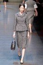 It was less kitsch than last season thanks to the sober herringbones and checks they used for skirtsuits and coats.