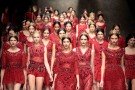 The golden mosaics of Sicily’s Cathedral of Monreale was the starting point of Domenico Dolce and Stefano Gabbana’s fall winter collection. The duo sent out a dozen dresses printed with Monreale’s famous Byzantine and Venetian mosaics, and just as many lacy dresses in cardinal red. For jewelry, rosaries.