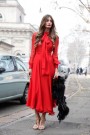 Today’s Just Cavalli show was filled with the most beautiful ethnic prints. Inspired by Roberto and Eva Cavalli’s trip to Bhutan they covered plants and special buildings. They appeared on completely printed looks; blouses, pants, ultra short dresses and even evening gowns.