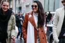 For his fall 2013 women’s collection Tommy Hilfiger drew from the same inspiration as for his men’s show: Savoile Row meets Ivy League. A key inspiration was Tommy Nutter, the man who gave Savile Row a swinging Sixties profile, dressing all the cool people like Beatles, Mick Jagger and Twiggy types included. Nutter loved fabric mixes — mash-ups of plaids, checks, tartans and more. Hilfiger opened his show with a group of coats and separates in various combinations, the mannish tailoring often offset by Mod-like mini kilts. The outerwear continued with printed shearlings, ponyskins, bonded khaki mackintosh coats and cozy toppers made of teddy-bear fleece.