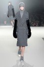 Alexander Wang was looking for something different in his fall 2013 collection. No neoprene, no modern techno-fabrics. Instead he went for the natural, fuzzy and warm: mohair, alpaca, astrakhan and anything that reminded him of hair. The result was an interesting and even edgy collection. Lots of outerwear of course with brushed denim and knit skirts. Romy coats were shaped by thick folds whether exaggerated lapels or tucks that created a rounded shoulder and tapered sleeve. Many of the coats were dark and sometimes even aggressive, but beautiful too. Wang handled the volume and fabric density with elegance. Wang’s other major element was the tuxedo in satin.