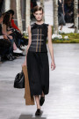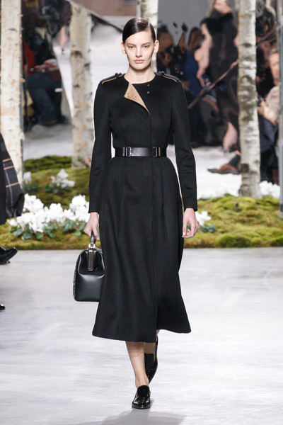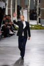 Last year the Hugo Boss group hired Jason Wu as their designer for Boss Women. Given the brand’s roots, tailoring was the focus of Wu’s first collection. Spare and minimal in cut and finish, the tailoring did have subtle femininity and movement. Wu worked in cashmere and silk in a classi palette of black, camel and gray. One of the strongest silhouettes was a long coat, slightly rounded at the shoulder, belted with an A-line skirt. It came in stricter variations with stiff collars and pretty plaid and leather panels for decorative interest.