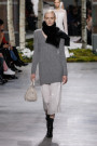 Michael Kors shows masterful shag furs, chunky cardigans and deluxe cashmere sweats on A-line skirts. The Row luxury wraps as cowl-neck cashmere sweaters and matching asymmetric hand-knit skirts. Love for comfort, exquisite materials and a soothing calmness and ease drives this look.
