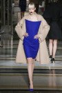 The show opened with mannish tailored coats with an extra lapel dripping, as if in a Dalí painting, over the shoulder, forming an offbeat sash.