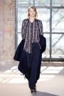 Tommy Hilfiger hit the deck by transforming the Park Avenue Armory into the T.H. Atlantic, a massive vessel leaving no nautical motif out to sea in his fall collection. Set up like a giant, early 20th-century passenger liner under a starry night sky with VIPs seated on the deck, the show was a Tommy Hilfiger theme park. The takes on admiral jackets, stripes, sailor pants and tops and Thirties-era printed silk dresses with Peter Pan and sailor collars were executed with a high level of polish.