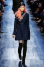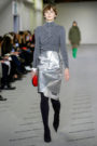 Phoebe Philo presented confident, distinctive women with a taste for classic luxury in her runway-show for Celine. That luxury looked advanced and individualized with a quirky cut, proportion, color or print. There was a sense of cosmopolitan practicality and versatility. Like the girl in the brown trench, crinkled as if it had been folded in a suitcase and worn with a leather hood tied around the neck, pants and galoshlike pointy leather boots. The woman in the black-and-blond fur coat over a casual navy V-neck sweater, aqua blue T-shirt and pants that zipped down over white heels, carrying a large, plain black canvas tote, like a reusable shopping bag, could have been trying to look like she wasn’t trying to look chic at the grocery store. A model — in a modernist Josephine dress, draped and gathered at the hem over lace tights and gold shoes — might have been headed to date night. Those carrying big fluffy blankets with their tuxedo tailoring and exotic prints, suggested travel, as did the model in a lightweight white trench done in a map print. We’ll definitely find parts of this collection back in mainstreet collections.