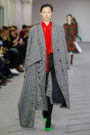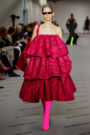 Gvasalia delivered a raw take on haute motifs, opening the show with a bold coat-and-dress series. One side of each coat was pulled way over and fastened on the opposite shoulder – and this was not a styling tric but the actual cut – apparently to give the look of a swath of fabric thrown over a model’s shoulder. These shapes looked bold and fresh, with a wearability range from runway only to real-word chic.