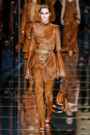 The wealth of craftsmanship and materials on display was impressive. Rousteing is proud of the house’s historic ateliers, which turned out dresses and tunics in elaborate patchworks of crystal mesh, jacquard, leather appliqué, embroidery, velvet, fringe and metallic studs. This was craft of the highest level.