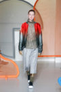 Liselore Frowijn designed her fall collection in the name of the greater goo: crafting an outdoor/nomadic/global collection as a commentary on “human unity and freedom.” The looks were pileups of quilted bombers, tunics and wide-leg pants that referenced traditional Indian garb, brushed wool scarves, ponchos and long tailored coats done in gradient colors. Planetary prints inspired by Alfred Eikelenboom and gold Spandex-ish layers added an otherworldly feeling to the eclectic mix.