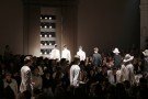 The catwalk at the Gianfranco Ferré show had the shape of an H, so the audience was divided in two. The enthusiastic people seemed to be sitting on the right side. They applauded for several looks, while the left side just sat there quietly.