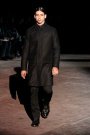 What would Jesus wear nowadays? If he shopped at Givenchy, he’d wear sandals, black stockings, a kilt, shorts and a gold crown of thorns necklace. The models at Givenchy looked like modern monks in their black and white clothes, black sandals (sometimes with, ugh, black shiny stockings), high collars and long coats. No laughs, no fun – this was serious man! But without all the fuzz, the basic collection is about a suit, a puffy jacket, a kilt, a white shirt and a long coat. Enough to mix endlessly.