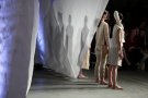 Rochas designer Marco Zanini showed his spring-summer 2013 collection at the Grand Palais during fashion week in Paris. The models walked to a soundtrack of the Beach Boys and showed a retro sportif collection.