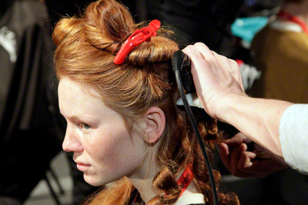 Take a peek backstage at the Salvatore Ferragamo-show, where the models are getting ready for their gig. Hairdressers and make-up artists are working hard to get the job done, and in between models take a little nap. It’s supposed to be a long day today.