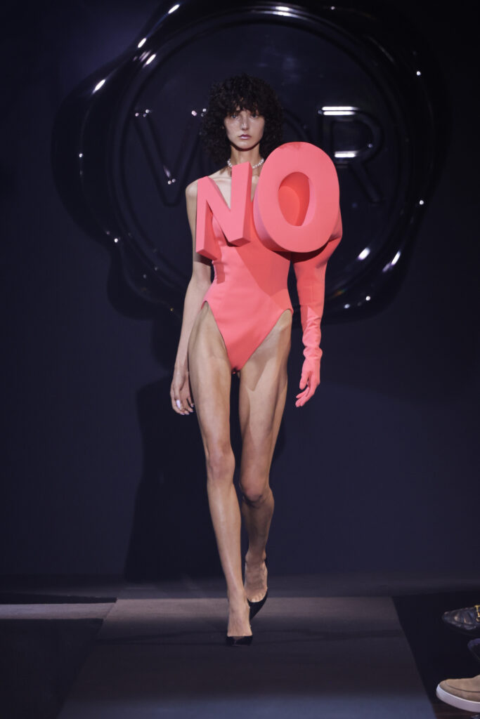 Yet the show stopping icing on the birthday cake were headless (male?) mannequins wearing black tailored tuxedos, hanging onto the models’ backs, or twisting in multiple formations around their bodies as if they were desperately calling for attention and didn’t want to let go. You can translate those images and this collection into a lot of symbolic stuff. To me it looked like an attempt to embody the women-empowerment, the fact that no matter what a woman is strong and tough as hell and invincible – and that even male designers like Viktor & Rolf couldn’t have survived in the business without women. So maybe, maybe it was also a big ‘thank you’ and humble bow to women.