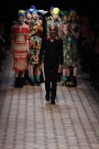 With his fall/winter collection Manish Arora proved he still had that ability to amaze people. We were wowed by an off white dress with eye-catching, padded shoulders and a strange print. A dress with a pink peacock pattern and a gray sequined top caught our attention as well.