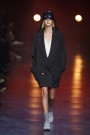 The first few models that were sent out on the runway wore some kind of fireman hats with long flaps at the back. Stiff, dark-colored coats, jeans and grey gym shoes completed their looks.
