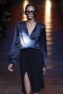 Costa’s streamlined shift dresses and coats all ended just above the knee. Besides, his clothes were all pretty loose fitting so the collection did lack some sex appeal. The designer did use some shiny black and white (almost silver) silk for his pants, blouses and dresses. He also added a few sparkles on the last designs of his collection but it didn’t make a lot of difference.