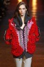 While the ‘music’ changed to all kinds of radio channels (we even heard Justin Timberlake’s – Rock your body) models in big ruffled jackets came on. The jackets were purple- and red-colored and had a lot of volume. The ruffles popped up on a pair of shoes too and some models even wore red clogs.