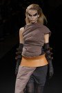 The show felt dark in many ways. The runway was hardly lighted, the models wore dark make-up and, as always with Owens, the clothes had a very dark edge to them. Yet we must say it was pleasant to see some earthy shades of green, gray and brown, in stead of all the black we saw last season. Owens even used a splash of metallic in some of his designs.