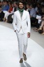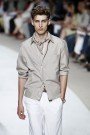Jackets were unlined, scarves were knotted around the neck and the pleated trousers looks casual but dressed. Tobacco brown and emerald-green spiced up the mineral-base palette.