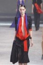 Ghesquiere’s collection for Balenciaga felt very streetwise. The fact that he had scouted six models straight from the streets might have had something to do with that. Those six girls as well as Stella Tennant, Carolyn Murphy, a pregnant Miranda Kerr and Gisele Bundchen wore his pied de cock dresses in black, white, blue and red. There were colorful printed sleeves blouses, asymmetric tops and there was quilted leather. The overall look was boyish and felt very Balenciaga.