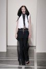 A not-too-great-looking Lily Cole opened the show in a black leather pantsuit, zipped on the front. The rest of her outfit was made from leather as well: shoes, belt, gloves, bag. Even her bowler hat and umbrella could easily have had some leather parts.