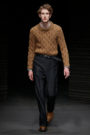 While most women might already be getting a little leopard exhausted, men are still getting their shot next year, if it’s up to Silvia Venturini Fendi. Their collection filled with fur, bright color combinations, texts (like YELLOW and TRY) and leopard prints will surely appeal to a young customer. Oh, and it also proved fluffy overcoats can be hot on guys too.