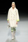 Benches with dresses formed the opening scene at Issey Miyake. Minutes later those same dresses were sent out on the runway worn by models. The knit pieces didn’t have the best possible fit and all seemed a little strange, but didn’t seem like it was a mistake. Remarkable were the pleated, ruffled and draped grey skirt and vest with light blue detailing and the bright printed suits. And those ‘Michelin’ coats looked unique too. Bright colored leggings added a sportive touch, while two final colored looks (beautifully shown by darker models) represented some kind of streetwise meets eighties vibe. Different from a lot of other brands Miyake’s models were well covered up. No cut-outs or sheer ensembles here, so conquering those cold winter temperatures in his layered, blown up coats won’t be a problem, at all.
