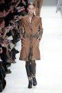 Benches with dresses formed the opening scene at Issey Miyake. Minutes later those same dresses were sent out on the runway worn by models. The knit pieces didn’t have the best possible fit and all seemed a little strange, but didn’t seem like it was a mistake. Remarkable were the pleated, ruffled and draped grey skirt and vest with light blue detailing and the bright printed suits. And those ‘Michelin’ coats looked unique too. Bright colored leggings added a sportive touch, while two final colored looks (beautifully shown by darker models) represented some kind of streetwise meets eighties vibe. Different from a lot of other brands Miyake’s models were well covered up. No cut-outs or sheer ensembles here, so conquering those cold winter temperatures in his layered, blown up coats won’t be a problem, at all.