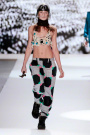 After watching a kaleidoscopic video with a virtual model talking about ‘little fluffy clouds’ and a moving backdrop Jacob Kok sent his models out on the LAB runway. They appeared sportive and modern in their structured, colorful pieces. They sported braided buns, backpacks and platform sneakers, details that gave away Koks eye for styling and accessories. Their hands in the pockets gave the girls a streetwise attitude. The link between fashion and technology, in which lays Koks focus, was visible in every single look. From the metallic sneakers to the shiny cream dress and some of the outstanding jewelry pieces. A short collection for Jacob Kok, but it impressed nevertheless.