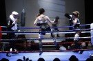 The Jean Paul Gaultier fashion show opened with two girls fighting against each other in a boxing ring that stood in the centre of the stage. Then beaten up models in JPG designs and boxing accessories came on stage. They wore face protection, boxing gloves, belts with the JPG logo and carried towels around their necks. They had bleeding noses and band-aids all over their faces, as if they had just been beaten up.