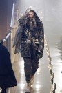 Inspired by drawings of Aubrey Beardsley (an influential illustrator and writer in the late 19th century) Bill Gaytten came up with luxurious ensembles for English women. His models were all dressed up in asymmetrical capes and dresses with enormous collars, large gloves and feather fascinators as their accessories. Especially the delicate designs in pleated satin and embroidered sheer fabrics appeared graceful. Done in shades of olive green, cinnamon, light mint and ruby red they seemed perfect for winter. And even though you could see every bit of the models’ bodies through them it still made the girls look classy.