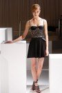It’s Christopher Kane’s new task to bring life back into Versus, the second line of the Versace-house which was hot in the nineties. The models were being placed on plinths to display the 25 wool, lace, and laser-cut neoprene dresses Kane has designed for his debut.  Donatella Versace herself was walking around looking over the group of black, mushroom, and sizzling red dresses. One dress was detailed with slashes held together with pink, red, and green aluminum safety pins—a reinvention of the dress that made  Elizabeth Hurley famous in 1994.