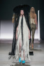 Aaand fashion week is officially started! Illustrator, artist and fashion designer Karim Adduchi (1988, Imzouren, Marokko) opened a fashion filled week with his ‘She lives behind the courtyard door’- collection. Ignoring trends and other fashion codes Adduchi took us to a place where tradition and mystic determine everything. His designs represented hidden beauty and strength, as colors and patterns also referred to Adduchi’s Moroccan roots, his dreams and barriers. Lots of focus on detail, which is much appreciated after years and years of minimalism. Carpets, both fresh from the loom and antique, are draped and sculpted, combined and mixed, their heavy wool textures contrasted by the occasional shimmer of elaborate modern details. All pieces are handmade and unique; the carpets hand-loomed in Morocco, the seams hand-stitched by Adduchi. Drawing inspiration from his own heritage, reconstructing it and using this history to tell us about courtyards and the women living in them. Adduchi invited us to create our own story, handing us the material to dream and to follow him behind the courtyard door. Adduchi is a storyteller, and fashion is his way of communicating without having to speak. Oh well, enough words, just take a look at the image gallery above and you get an idea.