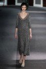 That was grunge-de-luxe what Marc Jacobs designed for Louis Vuitton. A bit ironic and provocative, but in a beautiful and sensual way. And melancholic. The set was a circular “hotel” constructed within the vast tent pitched in a Louvre courtyard. The wallpapered corridor housed 50 closed doors which the models opened and exited. The audience became voyeurs, as each “room” featured projections of hotel guests lounging and getting dressed, unaware of the scores of peering eyes.
