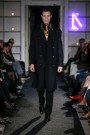 After Francisco van Benthum we jumped into our Mercedes and drove up to the city center of Amsterdam. There fashion label Kathryn Milan, a newcomer on the official schedule, presented it’s f/w collection. Since it was a client show instead of a press show the vibe was totally different from that at the Gashouder (the official show venue). Dapper gents and well dressed, prosperous ladies attended the collection presentation. They adoringly glazed at the label’s silk and satin creations (blouses, dresses and even a jumpsuit), coats with leather details (on the collars and the cuffs), tweed skirt suits and all kinds of glittery embroideries. Models got an elegant, wealthy allure through their perfect updos and chic jewelry. The closing black evening gown with an outstanding beaded collar truly was a show piece on the womenswear side, as a double breasted, woolen trenchcoat was a definite showstopper on the label’s menswear department. Designer David L. Turner gracefully walked his catwalk during the finale of the show, receiving a big applause from his attending loyal clientele.