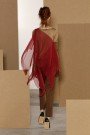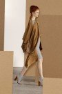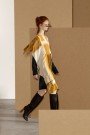 Two different rectangular pieces of fabric sandwich the body to make a top or dress, a mohair knit in front and a washed silk for the much shorter back. Complexity and ease merge in dresses and trousers with large integrated square shaped shawls that can be worn loose over the shoulder or tied around the neck creating a sophisticated draped top. Graphic effects were created by using different fabrics and colors, and the designers also tried to change the view on their creations, the front and back of some dressed were different in color, fit and fabric.