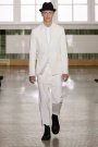Kris van Assche’s spring summer collection for 2012 is build around the new suit, with wider pants and jackets. They all came with heavy-soled boots, mirrored shades and hats, adding a punkish touch to the uniformity. Van Assche kept his favorite color palette: white, black, beige and shades of gray, with flashes of red in printed shirts.