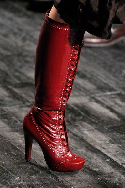 Probably one of the most remarkable trends in fashion this year was the dominatrix trend. We saw shiny leather pieces, hand cuff bags, corsages, transparent fabrics and… lots of ultra high lace- up boots. Remember Kate Moss closing down the Louis Vuitton show walking in those stunning boots? And she was not the only one.