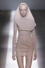The show of Thierry Mugler was the talk of the day, yesterday. Not only because it was Nicola Formichetti his first womenswear-collection for the house – but because Lady Gaga would also be part of the show. It’s great when a designer is supported by a star, but it also distracts you from the clothes that are actually shown. And that’s a pity. Formichetti designs for the stage, like Mugler himself used to do. These are extraordinairy clothes for extraordinairy women – popstars, clubgirls and stylists who can use some outrageous clothes.