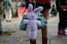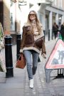 That rainbow check — and others — featured prominently in Saturday’s outing, which had a streetwear feel — and a retro one, too, what with the baggy shell suits, oversize zip-front jackets and check jackets that recalled Burberry’s chav days. Some of Bailey’s greatest hits, including shearling aviator jackets, capes and ponchos, military great coats and shimmery cocktail dresses, also beat a path down the catwalk.