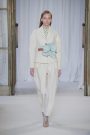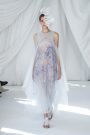 Inspired by the work of Murano glass artist Fulvio Bianconi Font created countless looks with sheer parts and see through details. With some models it even felt like you could see right through them, yet their clothes obviously were too beautiful to miss. Hand embroidered, nature inspired details on tops and dresses gave the collection an extra touch of delicacy. Although the light colored, ruffled and draped ensembles already spoke of next level elegancy.