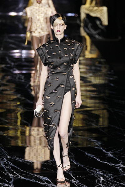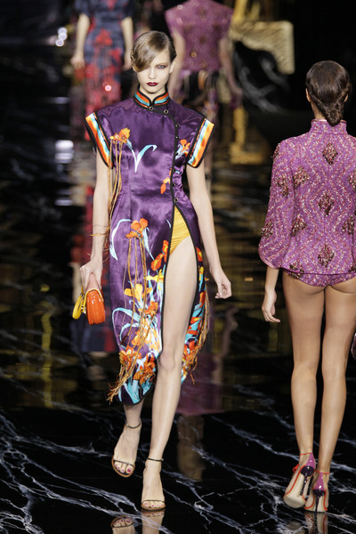 He gave the collection a bit of an oriental feeling by adding shiny Eastern-inspired designs. Besides animal prints he also had images of panda’s and giraffes on the clothes. Plus two large tiger were placed on stage.