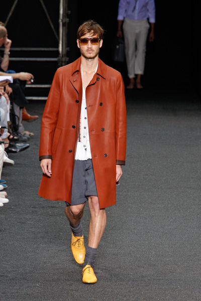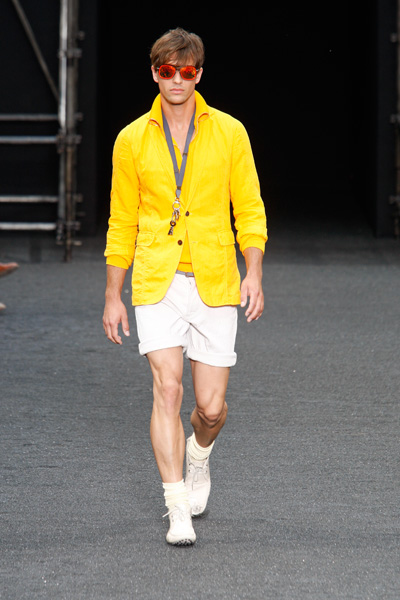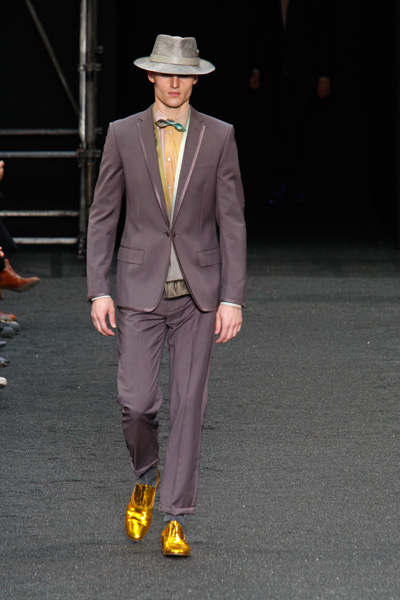 According to Paul Helbers and his team at Louis Vuitton bike messengers are ‘the gentlemen butterflies’ of the city. Ore maybe he wants them to be. Anyway, to honor those fast flying cool guys Helbers created a collection full of sleek, aerodynamic and athletic wear in high tech fabrics. The result was a contemporary collection that fits into a big mean metropolis, functional jackets in nylon and neoprene, cotton silk leggings, safari-jackets. The catwalk looked like asphalt and Lou Reed was on the soundtrack. Yellow was the color to be and prints looked like urban surfaces. And the shoes! They suggested graffitied glitter. If I were a man…