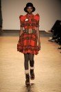 For his second line Marc by Marc Jacobs, the designer mixed milirairy influences with a youthful style. Lot of dresses, from a red satin onewith purple appliqués and a gathered waist to smock dresses. Two-tone A-line pleated skirts reminded of schoolgirls. Knits were slouchy and cosy, and jackets ranged from the fuzzy double-breasted coat to more linear, car coats to parkas with a furry hood.